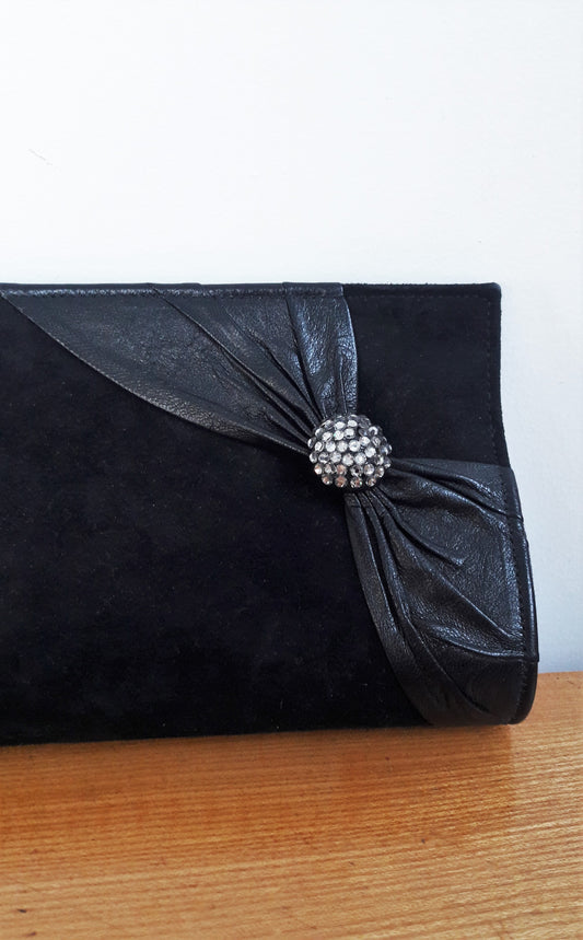 Vintage Black Suedette Sparkle Clutch