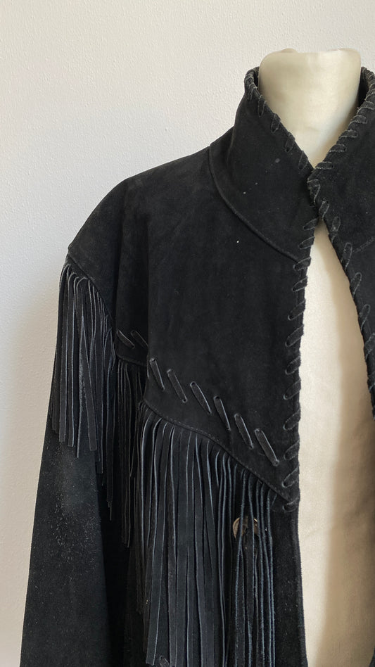 Vintage Black Suede Fringe Leather Jacket Coat by Running Bear