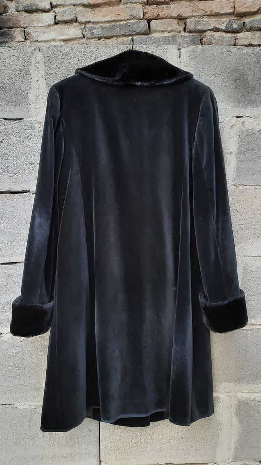 Vintage Black Velvet Faux Fur Collar "Hobbs" Coat