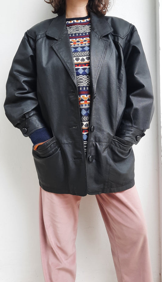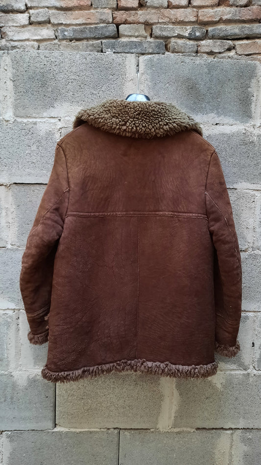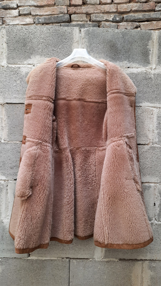 Vintage Camel Brown Leather Sheepskin Heavy Coat