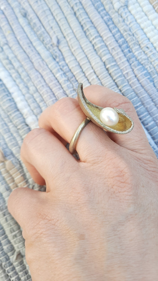 Vintage 925 Sterling Silver Pearl Ring