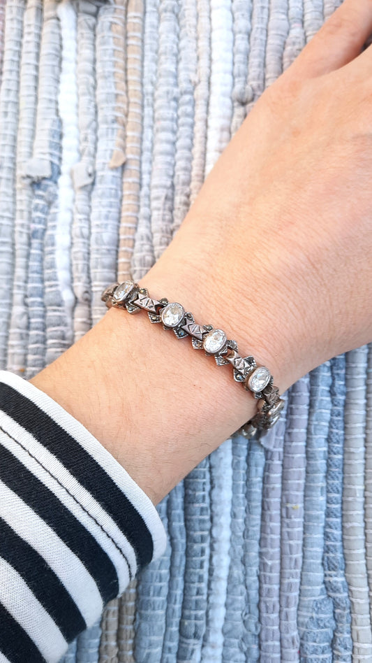 Vintage Silver & Crystal Tennis Bracelet