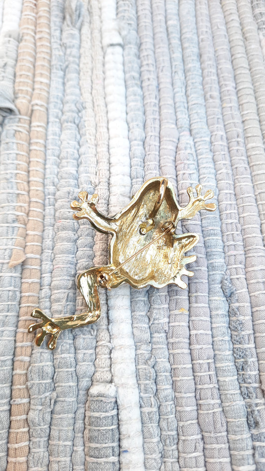 Vintage Rhinestone Frog Brooch & Pendant 2-in-1