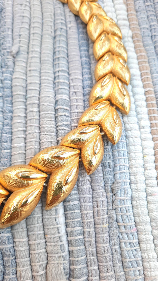 Vintage Gold Double Leaf Choker Necklace
