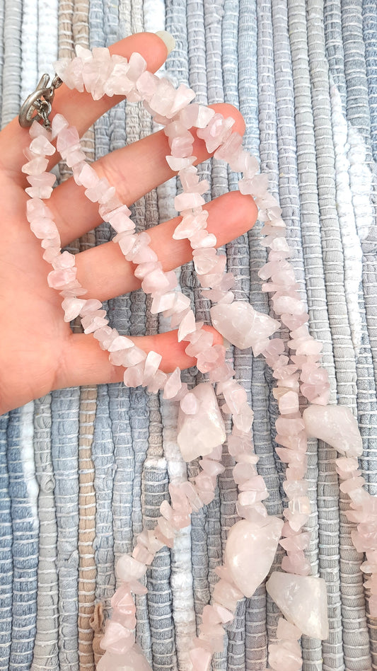 Vintage Raw Rose & White Quartz Necklaces