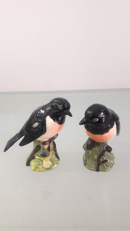 Set of Vintage Beswick Stonechat Porcelain Birds