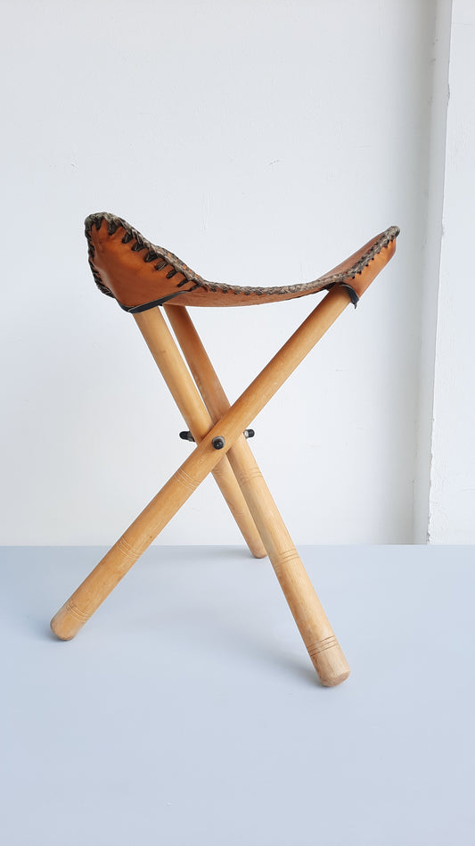 Sold outVintage Leather & Wood Tripod Stool