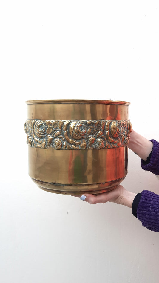 Sold outLarge Brass Rose Embossed Planters