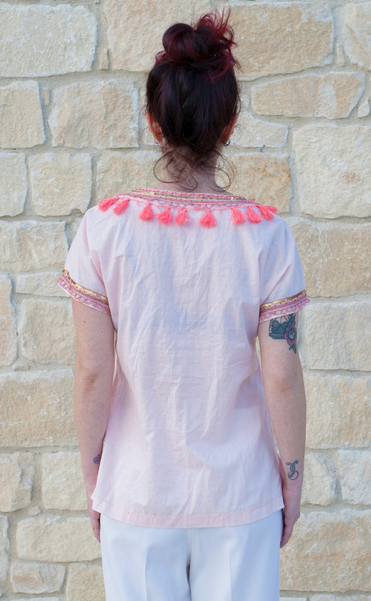 Preloved J. Crew Pink Tassle Trim T-shirt
