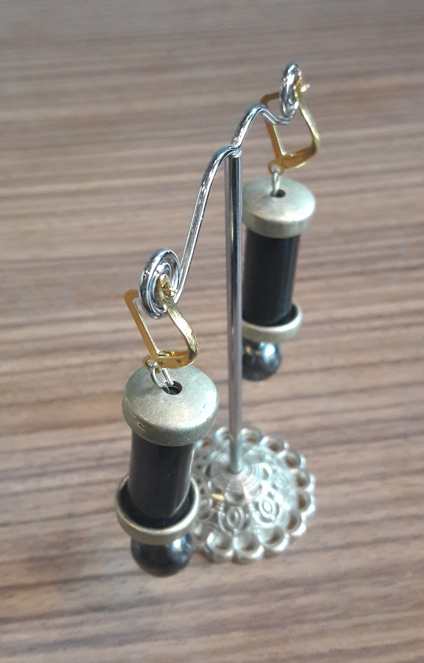 These earrings are part of our own brand jewellery collection which includes pieces that are handmade in house using materials and parts that have been upcycled from various other items that have either been discarded or are broken.