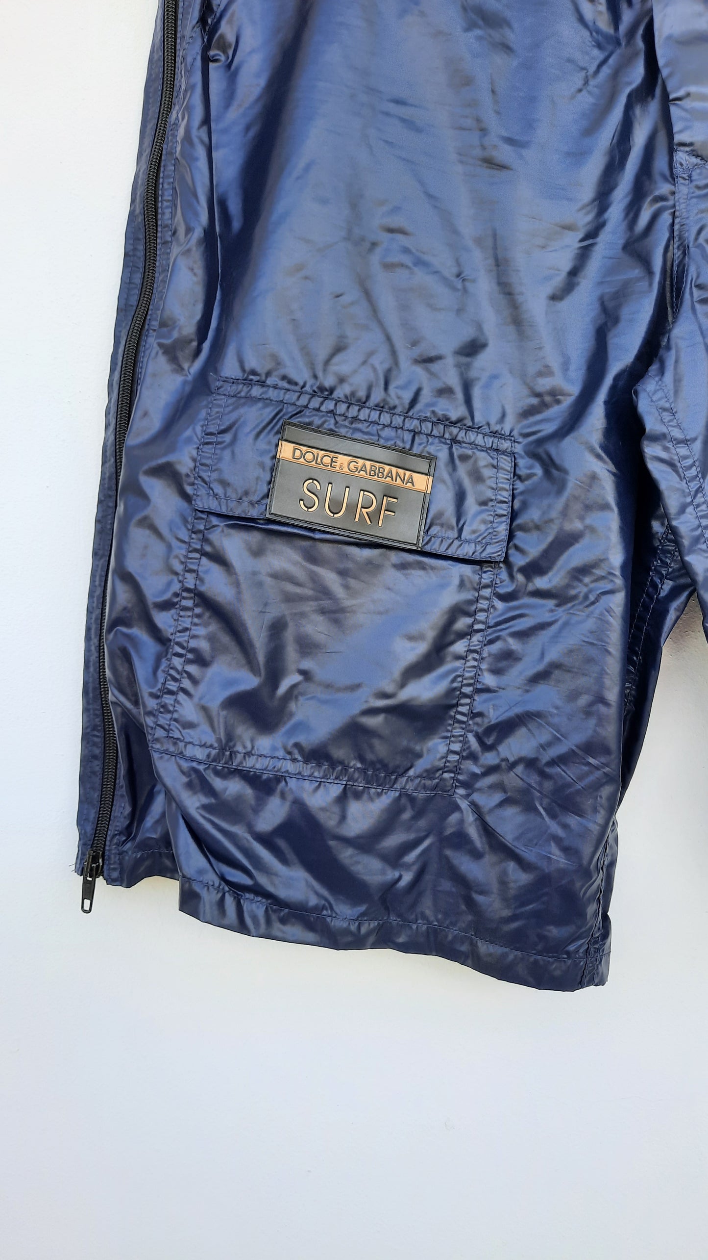 Super cool vintage Dolce & Gabbana surf shorts with velcro pockets and closure as well as handy side zips. Not just for the beach, these can be worn as regular shorts for a cool wet look outfit!