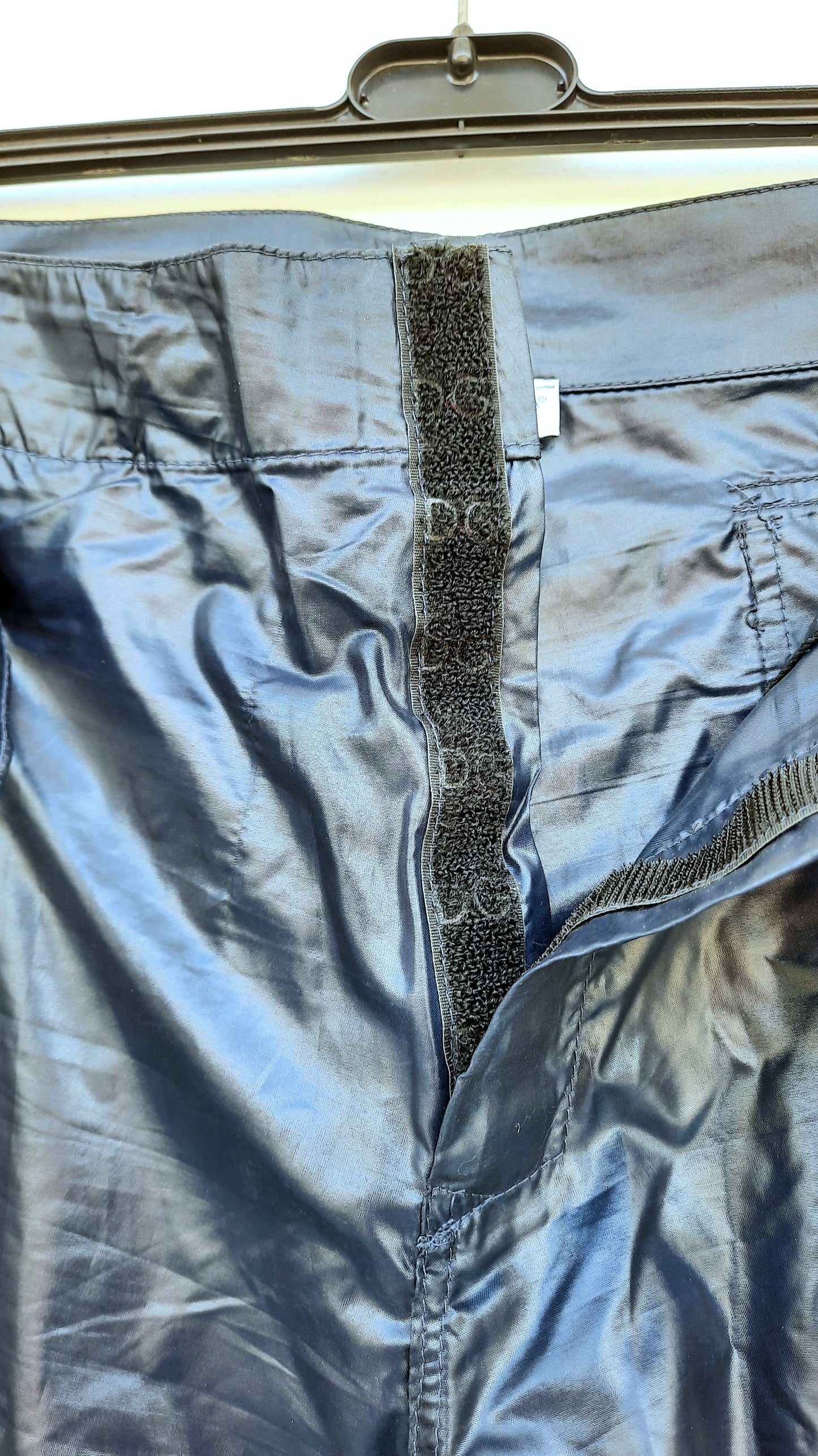 Trims: Two side pockets, two front velcro leg pockets, velcro waist belt, velcro crotch closure, two full side leg zips, two velcro back pockets