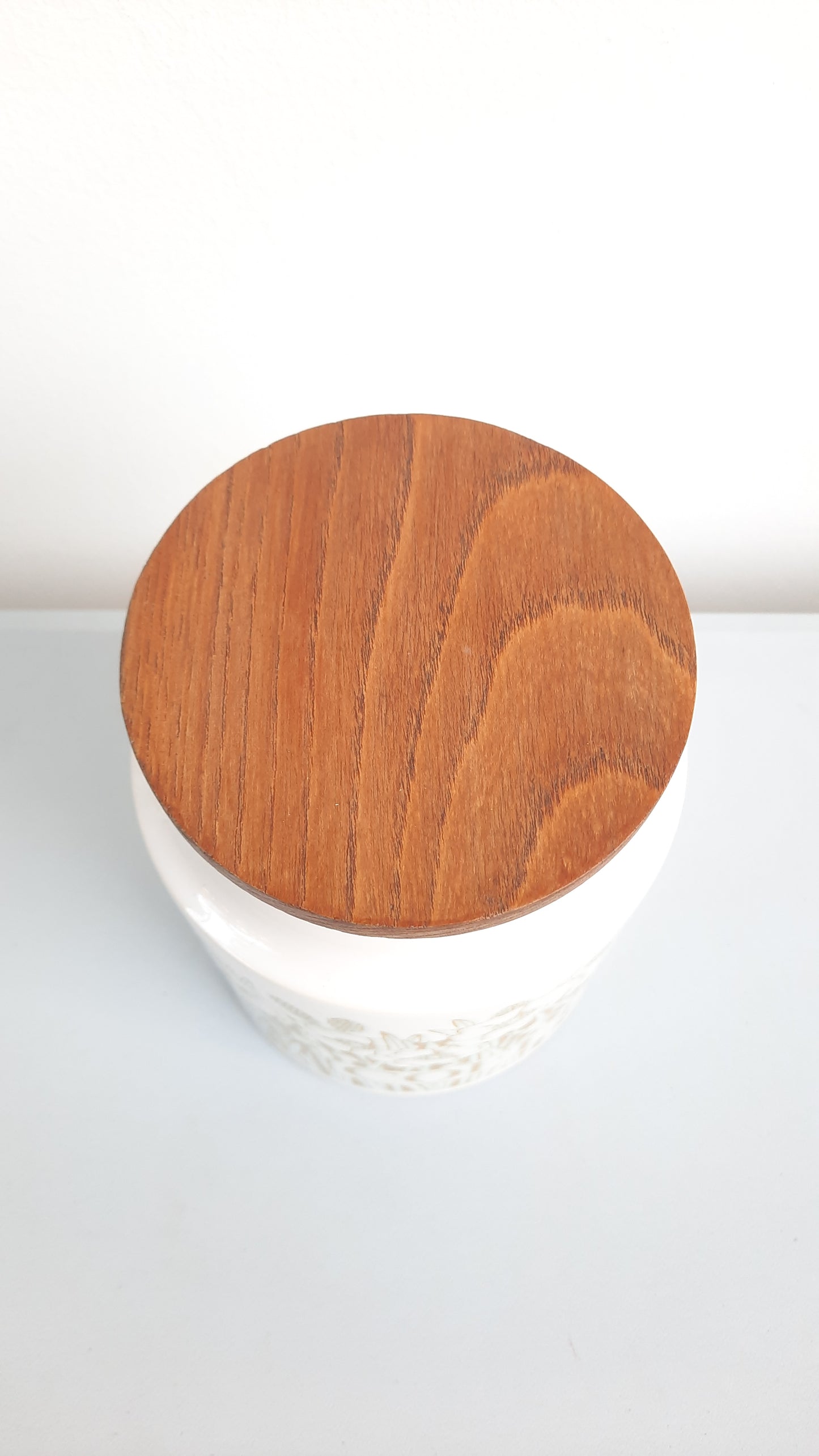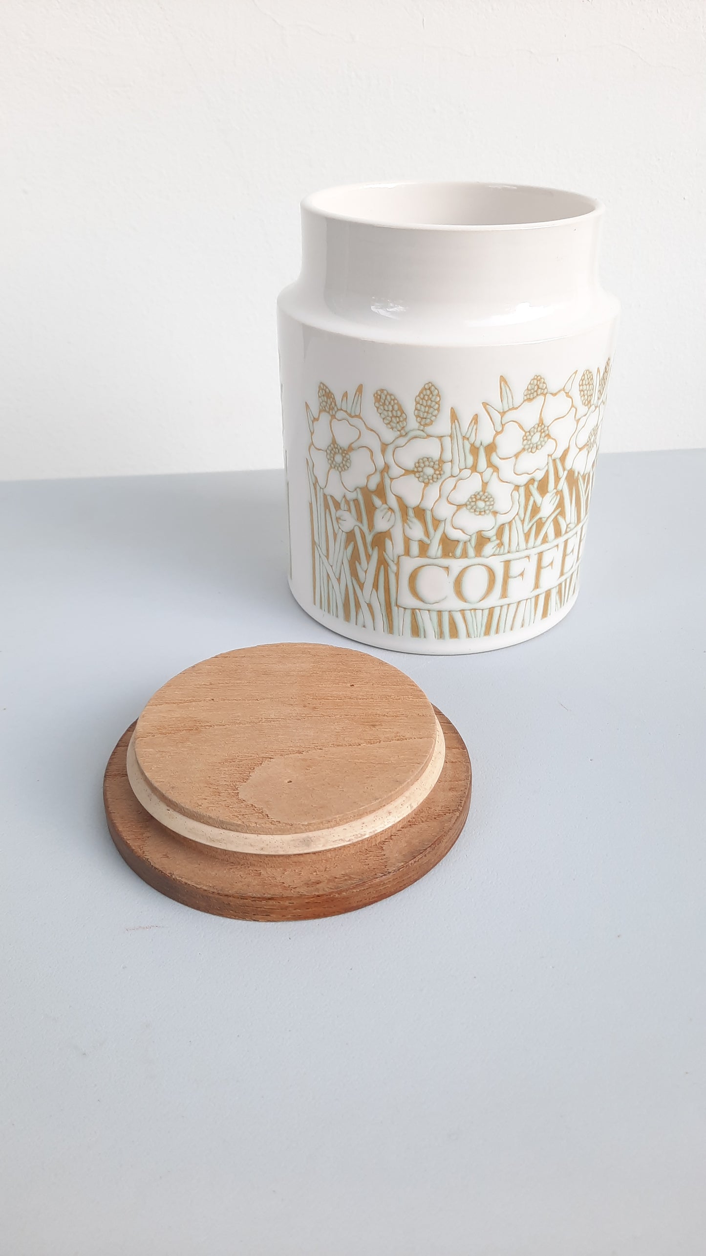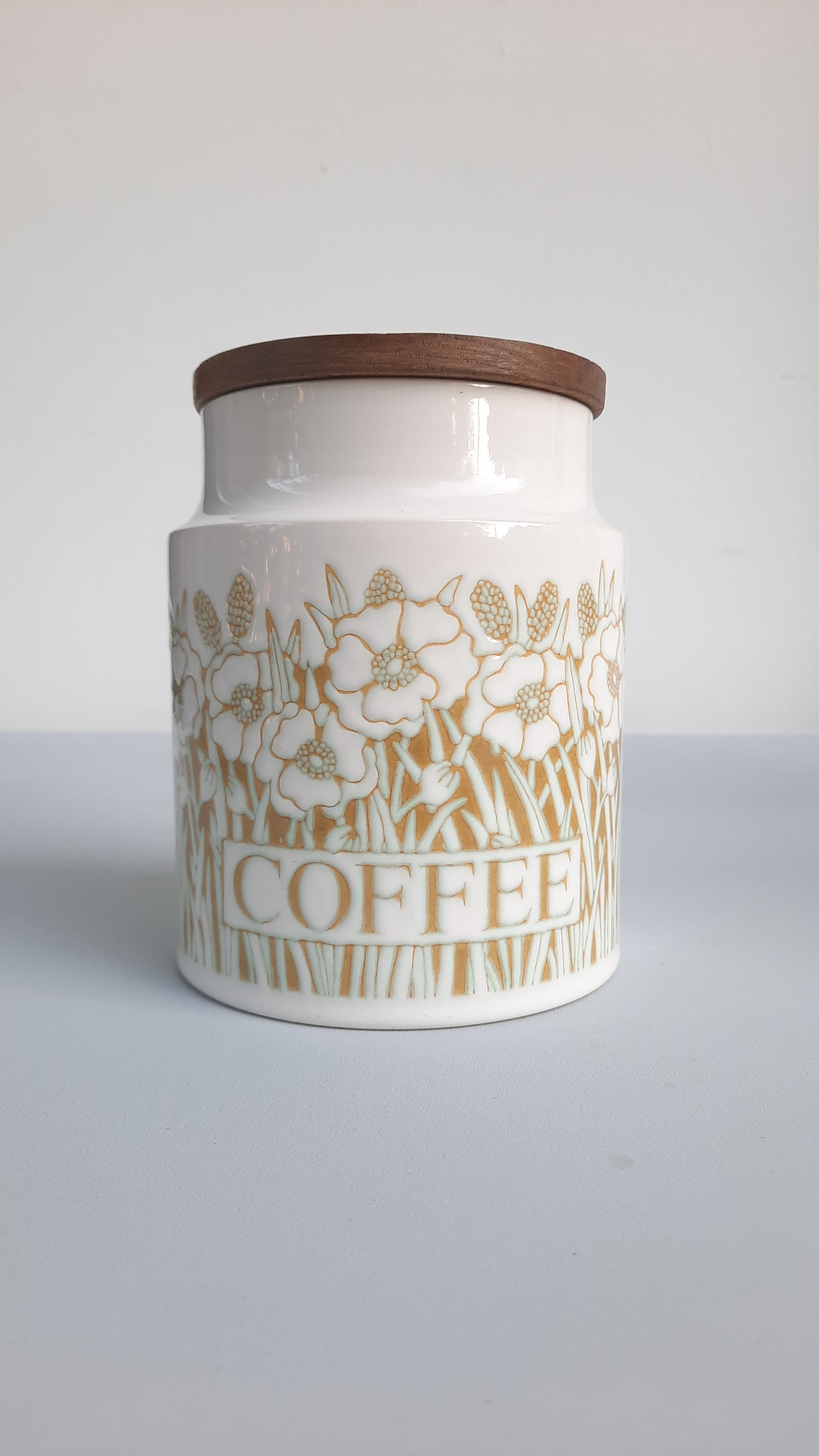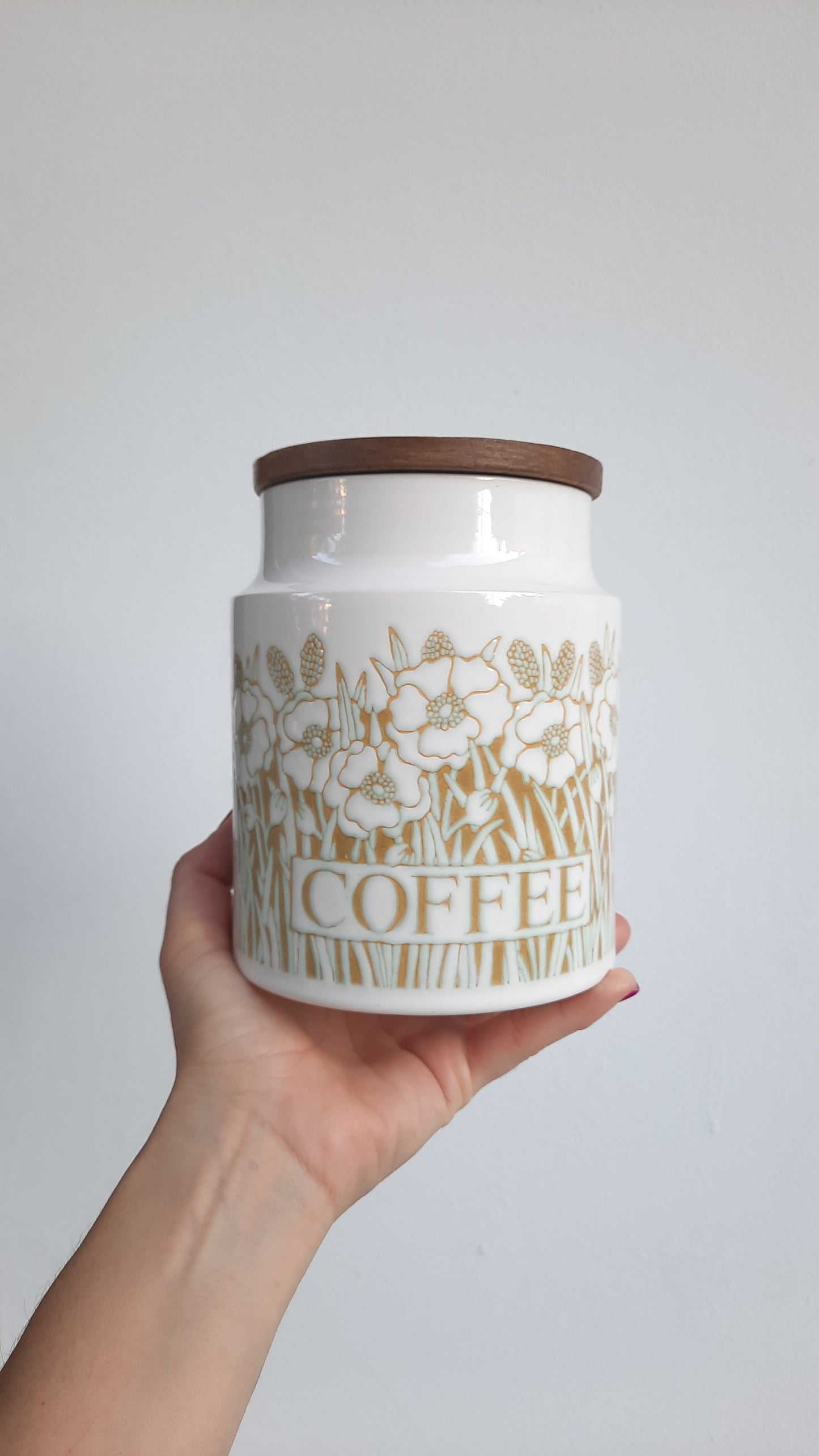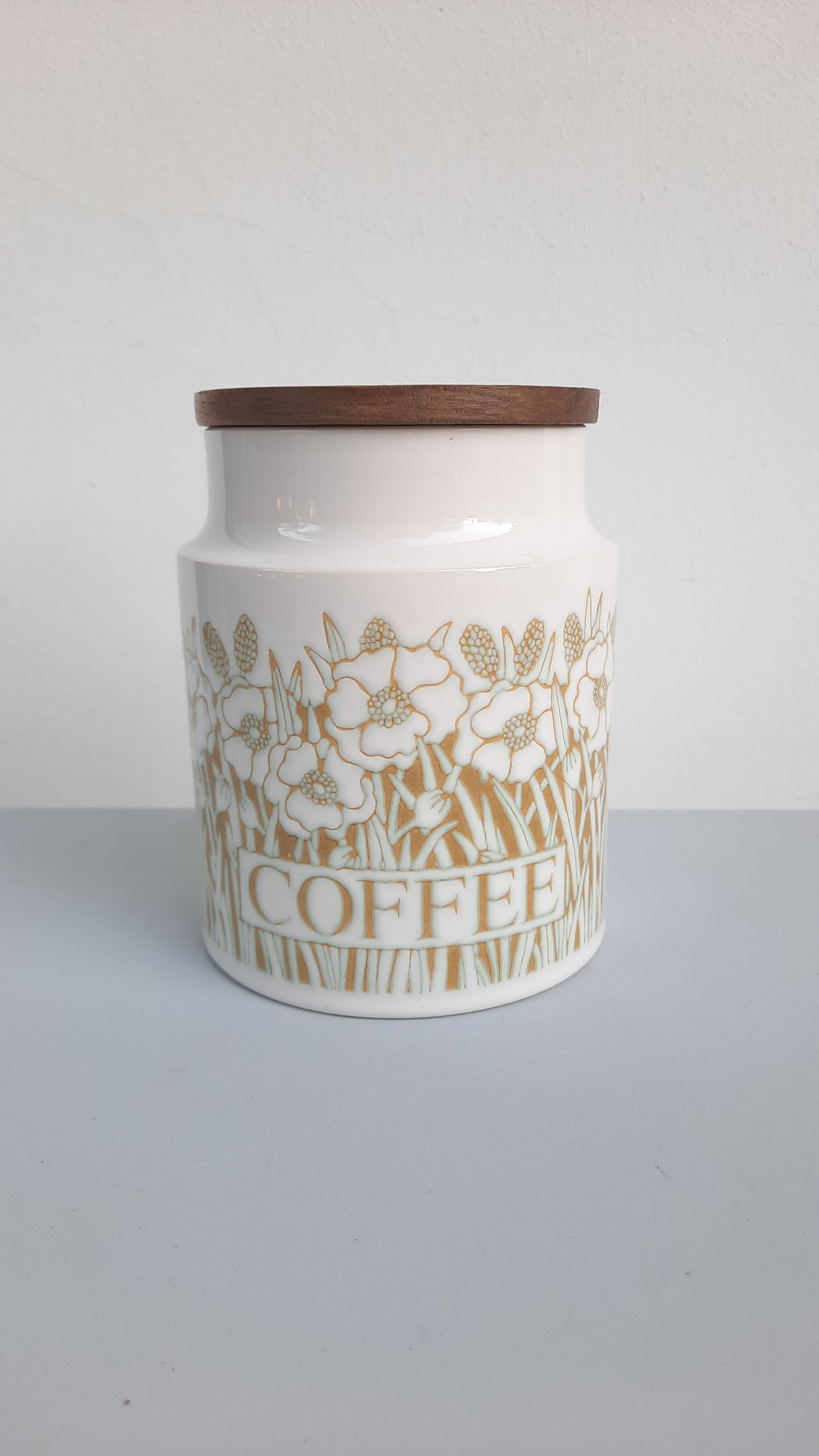 Beautiful ceramic coffee pot by well known British pottery company Hornsea. This jar is from the popular "Fleur" range designed by Sara Vardy in 1974. Gorgeous stained ok lid is the cherry on top.