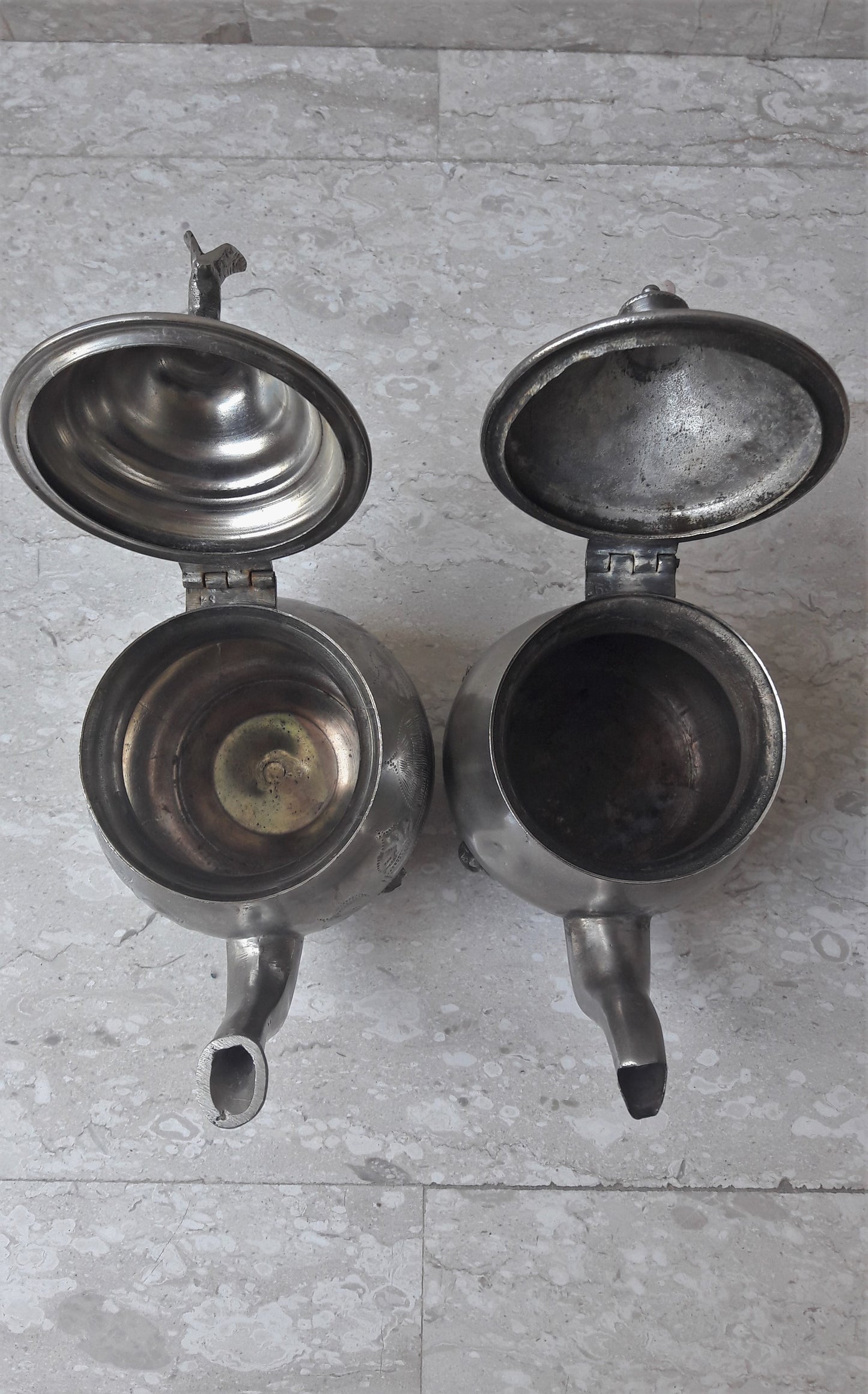 Trims: Hinged lids on both teapots