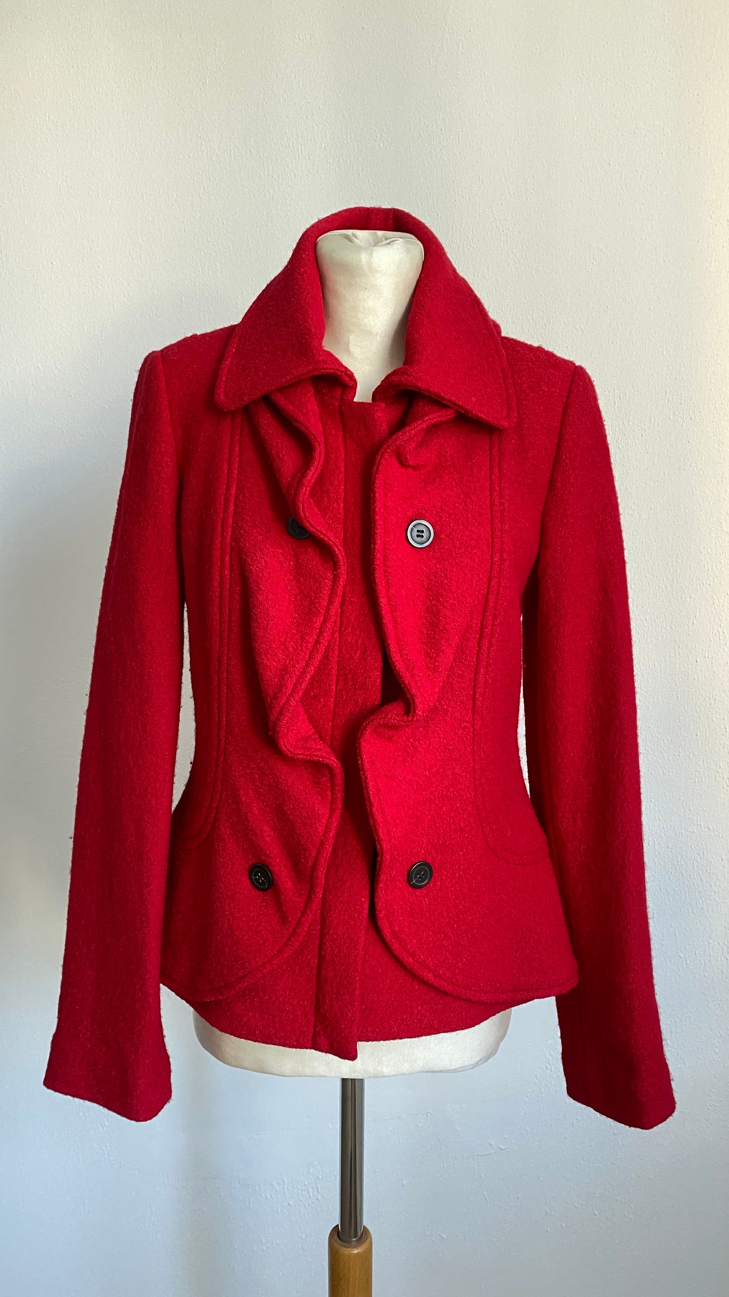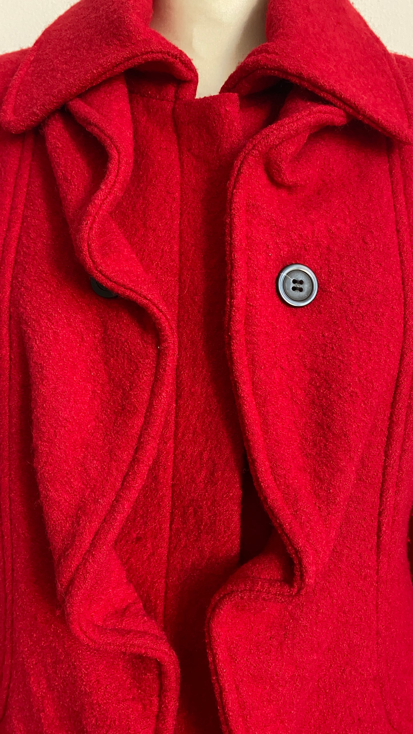 Vintage Red Ruffled Wool Jacket by Manoukian